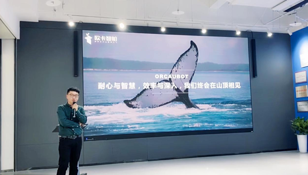 公司创业优秀代表、欧卡智舶创始人朱建楠分享了“我的机器人创业之路”。通过对自身创业项目出发,真实展示了创业之路的艰难与不易,他表示,只有找到自己行业需求点,不断对产品力进行打磨,苦练内功,让自己与团队不断迭代,同时把握住市场与外界的机遇,才有创业成功的可能。