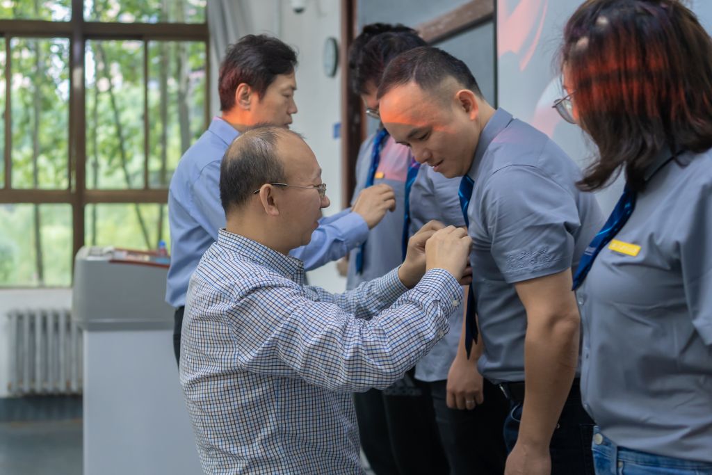 williamhill英国威廉希尔经理车阿大、党委书记乔彩燕、副经理郭云涛、副书记樊琳、MBA/MEM教育中心主任杨宏玲、MPAcc教育中心/管理案例研究与开发中心主任金帆、MBA/MEM教育中心副主任孙若妮、肖平,利用上课前的时间,分别到各班的教室,为各班授予班旗,为新生代表佩戴校徽,并为2021级新生送上了中秋月饼以及对学子们浓浓的关爱和满满的祝福。