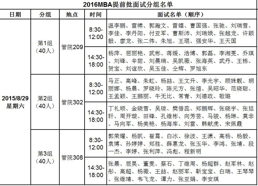 注:面试后7天内在williamhill英国威廉希尔MBA主页(glxy.nwpu.edu.cn/mba)公布提前批面试成绩优秀、良好名单,考生登录查询