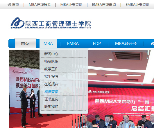 3. 登陆陕西工商管理硕士公司网址http://www.s-mba.com/ ,在“MBA”栏目中点击“成绩查询”,点击“入学考试成绩查询”,考试批次选择 “2017级06月入学考试”,并输入姓名、准考证号码查询。