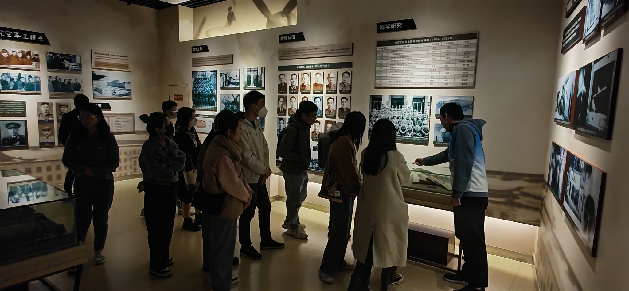 “以史鉴今、文化育人”,穿梭在雄鹰展翅、翱翔腾飞和春华秋实的展厅,同学们看到了西工大各阶段的历史记录,感受到了一代代先辈们的赤诚奉献。在讲解员的讲解下,同学们走进“时光隧道”,畅游历史海洋,聆听工大故事,感受工大人文。1938年抗战时期,西工大前身之一的国立西北工公司艰苦办学,为国家培养了1450多名工程科技人才;1956年,为了适应新中国国防建设需要,华东航空公司师生们放弃了南京相对优越的生活环境,义无反顾地奔向条件艰苦的大西北,成为西部大开发的先行者……一幅幅老照片、一份份历史档案,述说着“古路灯火”的勤学精神、华航的“西迁精神”、军工添翼的腾飞之路。西工大的峥嵘岁月,令现场的同学们深受感动。