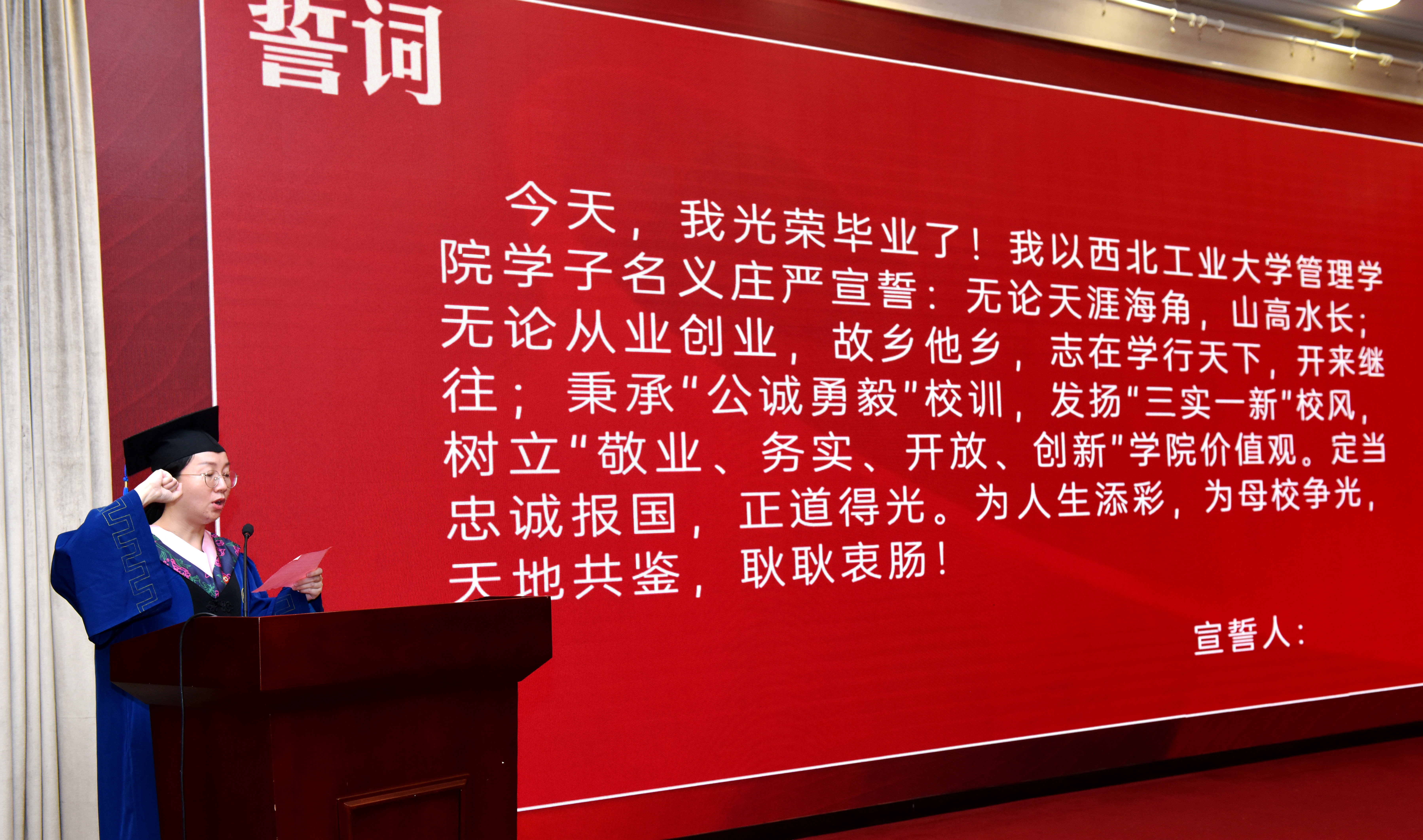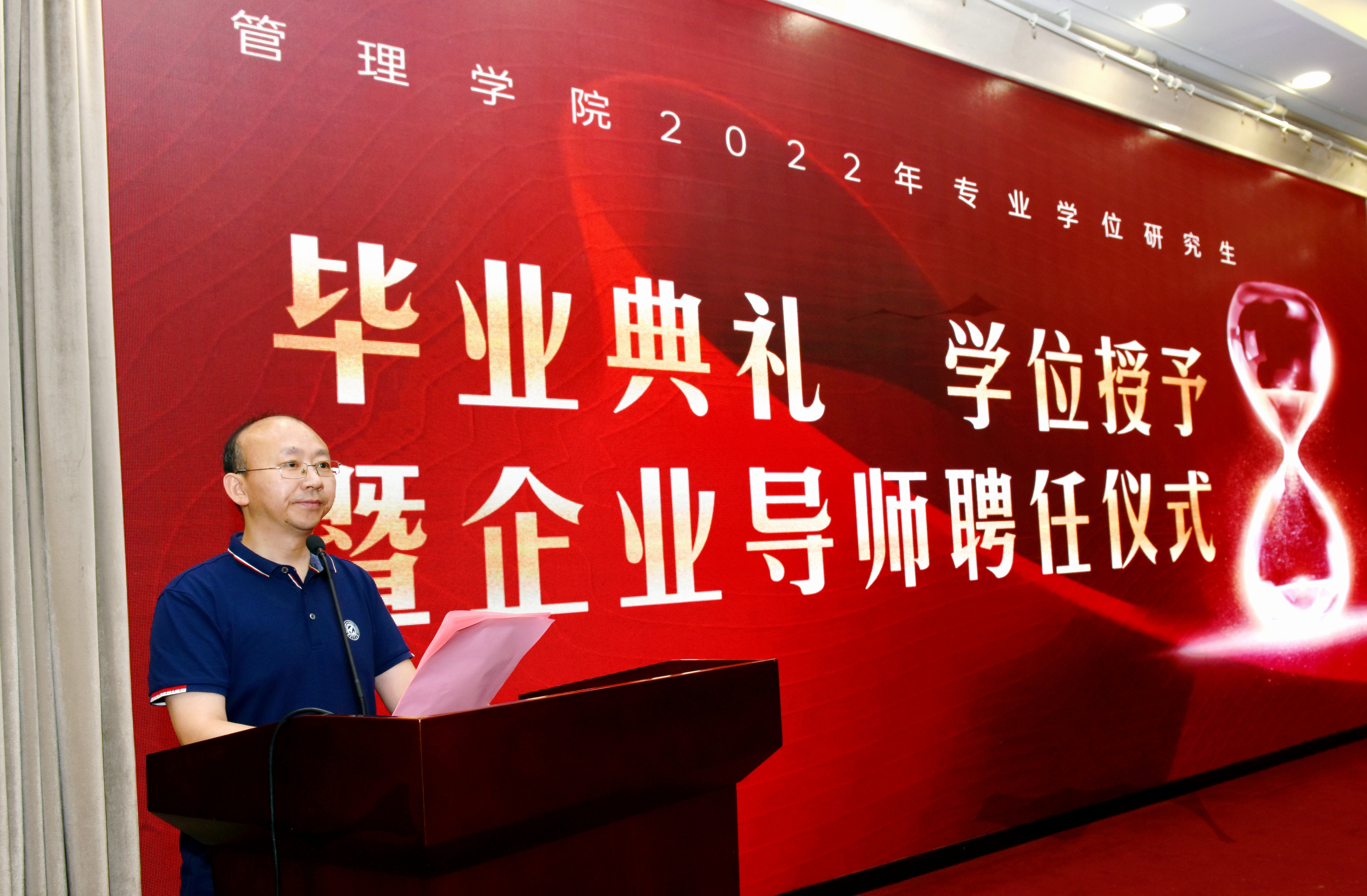 经理车阿大教授向毕业生们致以热烈的祝贺。他表示,2022届毕业生屡次遭受新冠疫情突袭的求学经历,让同学们一起学习的每一天更加值得回忆和珍惜。他对同学们提出三点希望:一是不忘初心使命,在学思践悟中坚定理想信念,在奋发有为中践行初心使命;二是树立终身学习理念,面对经济社会的快速发展,新技术、新业态和新商业模式带来的各种机遇和挑战;三是继续传承校训校风,在一个又一个新的起点上取得骄人的成绩,在各行各业续写“西工大现象”,为母校争光,为人生添彩。