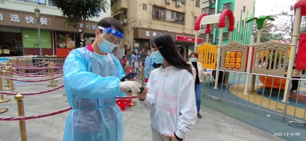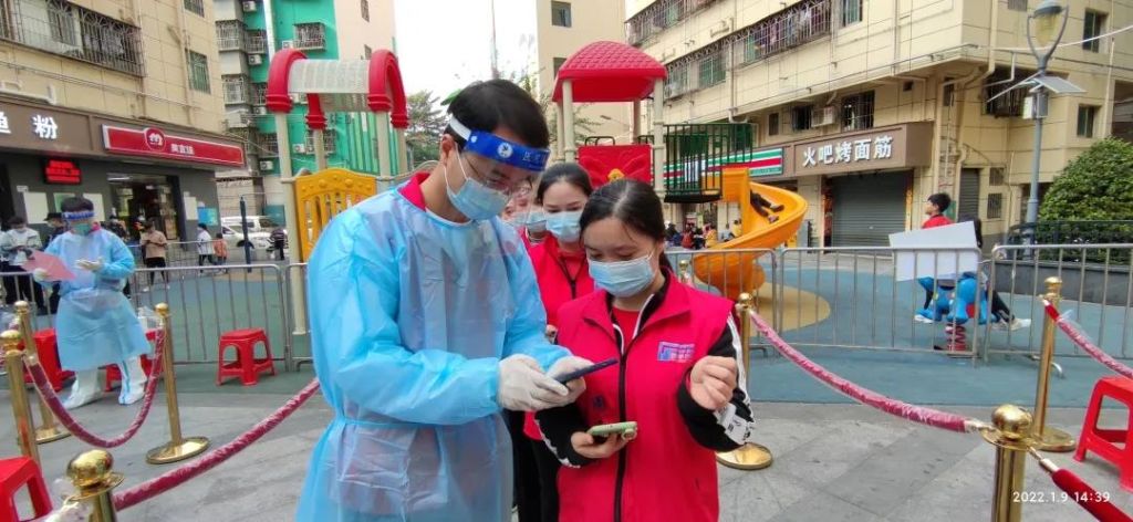 作为东莞市常平镇疫情防控指挥办的一员,刘昊在防疫一线组织群众开展大规模核酸筛查,在疫情指挥部协调各部门有序开展防疫工作,为群众提供防疫政策和疫苗接种咨询服务。